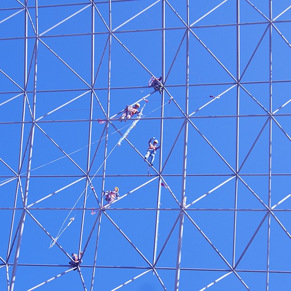 濃郁的色彩已引不起我的興趣,走在工廠的鋼架構(gòu)中間尋找著工業(yè)攝影中的“人文”,在整理照片的過(guò)程中我發(fā)現(xiàn)了這樣一個(gè)群體,他們很辛苦,其中有架子工、油漆工、電工、焊工等,他們有時(shí)在離地面數(shù)十、上百米的高空作業(yè),整個(gè)作業(yè)過(guò)程,令人心驚膽戰(zhàn)、如果防護(hù)措施不到位,就會(huì)隨時(shí)有生命危險(xiǎn),可以這么說(shuō):他們的工作完全是走在刀尖上的。我從中挑了幾幅拙作暫且起名《刀尖上的舞者》。