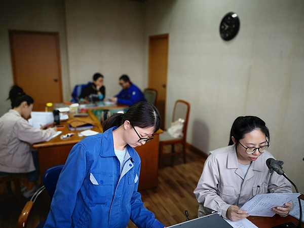 為了有效利用白天的檢修時(shí)間,減少夜間加班的作業(yè)風(fēng)險(xiǎn),推進(jìn)大檢修安全高效進(jìn)行,7:30成為每天大檢修的工作開始時(shí)間。寒氣還未散盡,辛勤的檢修人已經(jīng)早起身,就餐、早點(diǎn)名、安全交接、廣播宣傳、一線報(bào)道等井然有序,檢修時(shí)間,我們一同前行。