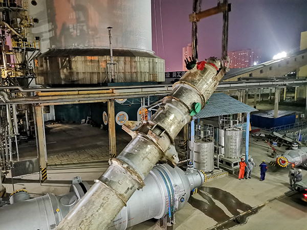 她的設(shè)計(jì)重量不帶封頭是45噸重,吊裝時(shí)顯示體重剩下了42噸,她為渭化鞠躬盡瘁。