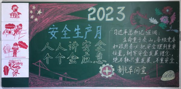 每年6月份是我國的安全生產(chǎn)宣傳教育月,也被稱為“安全生產(chǎn)月”。自開展“人人講安全、個個會應(yīng)急”為主題的“安全生產(chǎn)月”活動啟動以來,彬州公司各部門百花齊放,精心設(shè)計黑板報的版面和內(nèi)容,圖文并茂,內(nèi)容豐富多彩,大力營造良好安全工作氛圍。