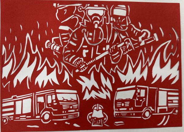 史艷榮剪紙作品——《用剪紙剪出“消防超人”》