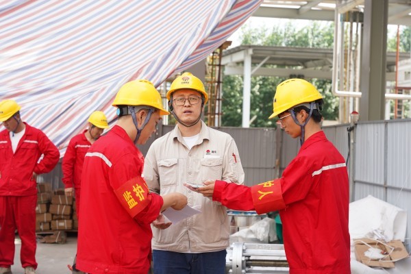 管廊間穿梭,高塔上攀爬,設(shè)備旁專(zhuān)注研討——這是渭化檢修人的日常戰(zhàn)場(chǎng)。烈日炙烤著鋼鐵叢林,汗水浸透工裝,但安全帽下的目光始終專(zhuān)注,手上的操作精準(zhǔn)嚴(yán)謹(jǐn)。疲憊襲來(lái)時(shí),一杯及時(shí)送達(dá)的清涼綠豆湯,不僅消解了暑熱,更如一股暖流,注入了繼續(xù)奮戰(zhàn)的力量。每一次細(xì)致的檢查,每一次認(rèn)真的維修,都在默默守護(hù)著裝置的平穩(wěn)運(yùn)行。致敬,高溫下的堅(jiān)守者!